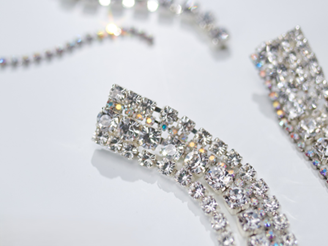 The contrast between delicate color and sharp crystalline shapes creates a modern, high-impact composition. Each movement of the hand reveals flashes of light, turning everyday gestures into moments of brilliance.